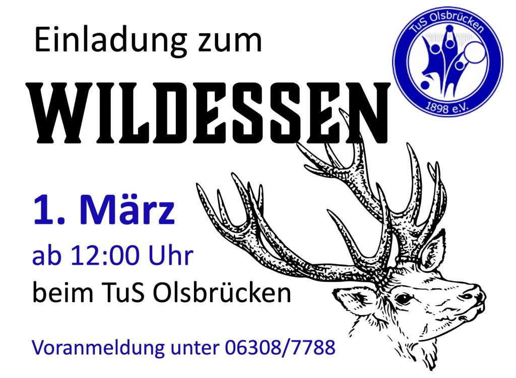 Der TuS Olsbrücken eröffnet am Sonntag, 1. März sein kulinarisches Jahr 2026 mit einem Wildessen, zu dem Mitglieder und Freunde herzlich eingeladen sind. Anmeldungen werden ab sofort entgegen genommen. Unser Koch wird Reh und Wildschwein mit Rotkraut und Knödeln...