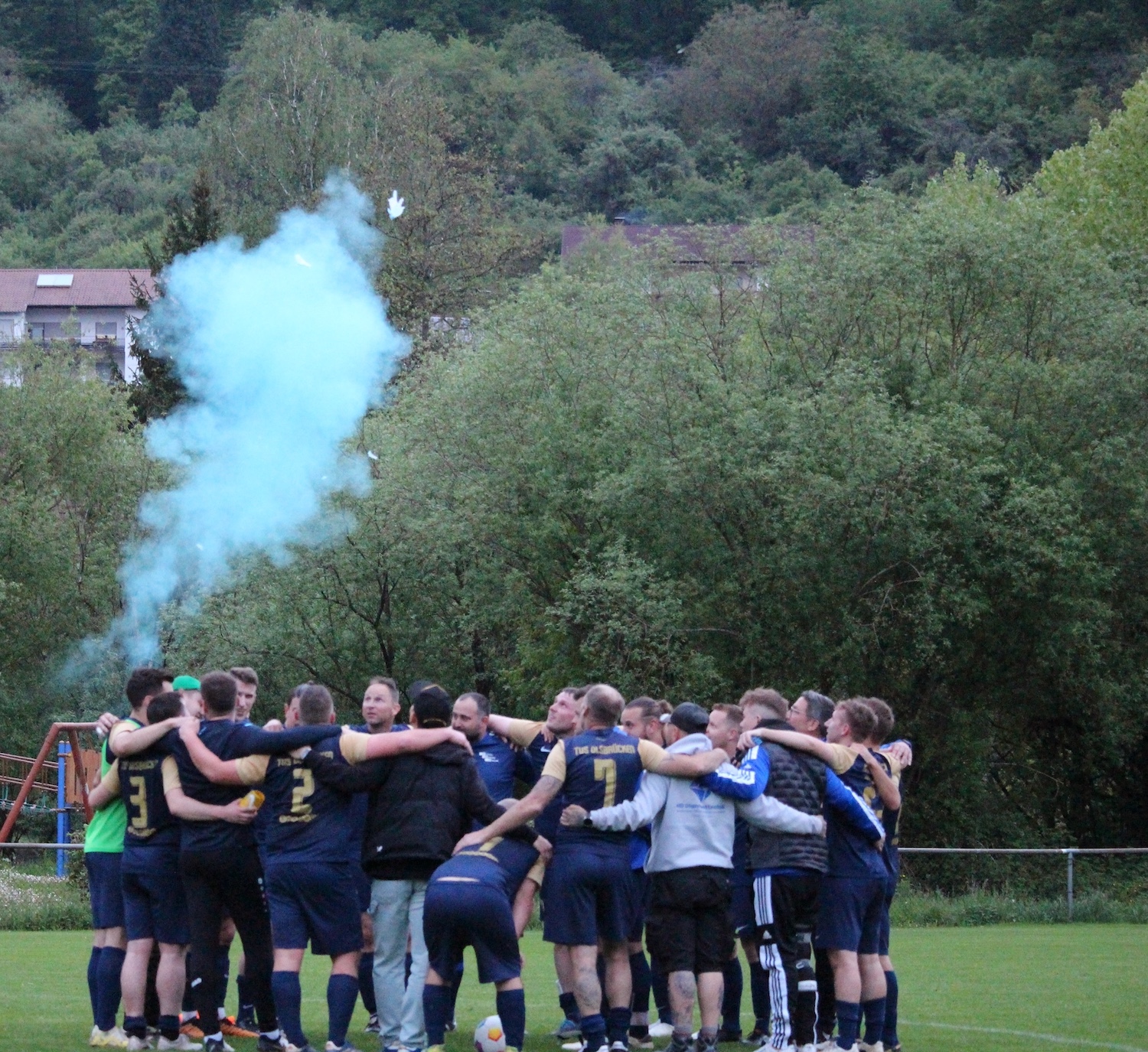 Das Punktspiel gegen die Zweite der TSG Kaiserslautern wurde auf den Dienstag, 7. Mai vorverlegt.  Zahlreiche Fans kamen, um das spannende Spiel zu verfolgen und unsere Mannschaft kräftig zu unterstützen. Immerhin geht es um wichtige Punkte im Kampf um einen möglichen Aufstieg. Und die Zuschauer wurden nicht enttäuscht – unsere TuS siegte in einem hart umkämpften Spiel gegen einen stark aufspielenden Gegner mit 3:0. Torschützen waren Julian Bollenbacher (44. und 66. Min.) und Niklas Gödtel | (84. Min.) .